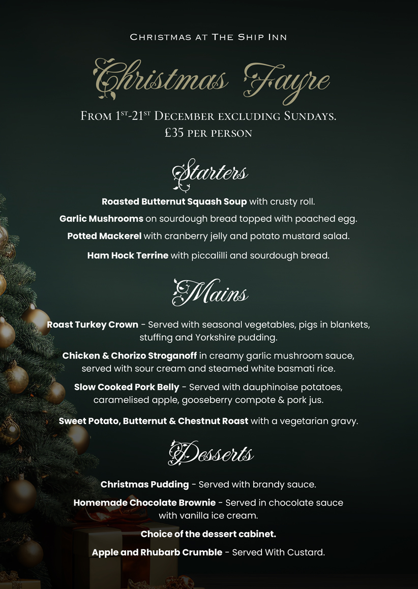 Spaces are limited and bookings are filling up fast β donβt miss out on this seasonal celebration at The Ship! π’π