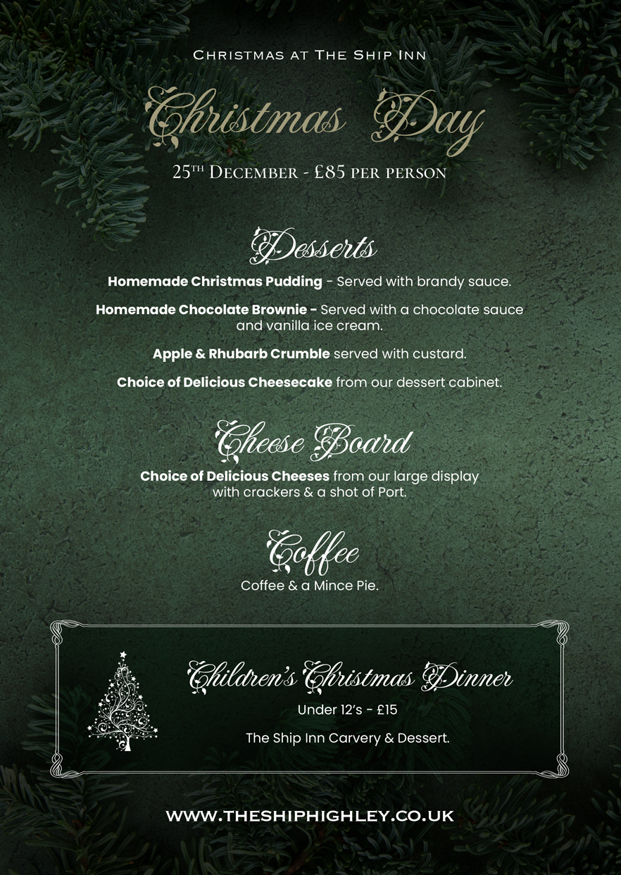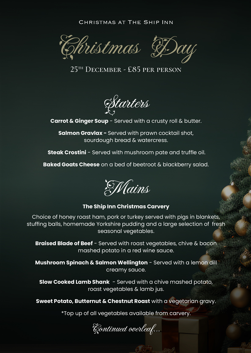 Join us for our traditional Ship Inn Carvery - generous portions, freshly roasted meats, and all your favourite trimmings with a choice of delicious desserts.